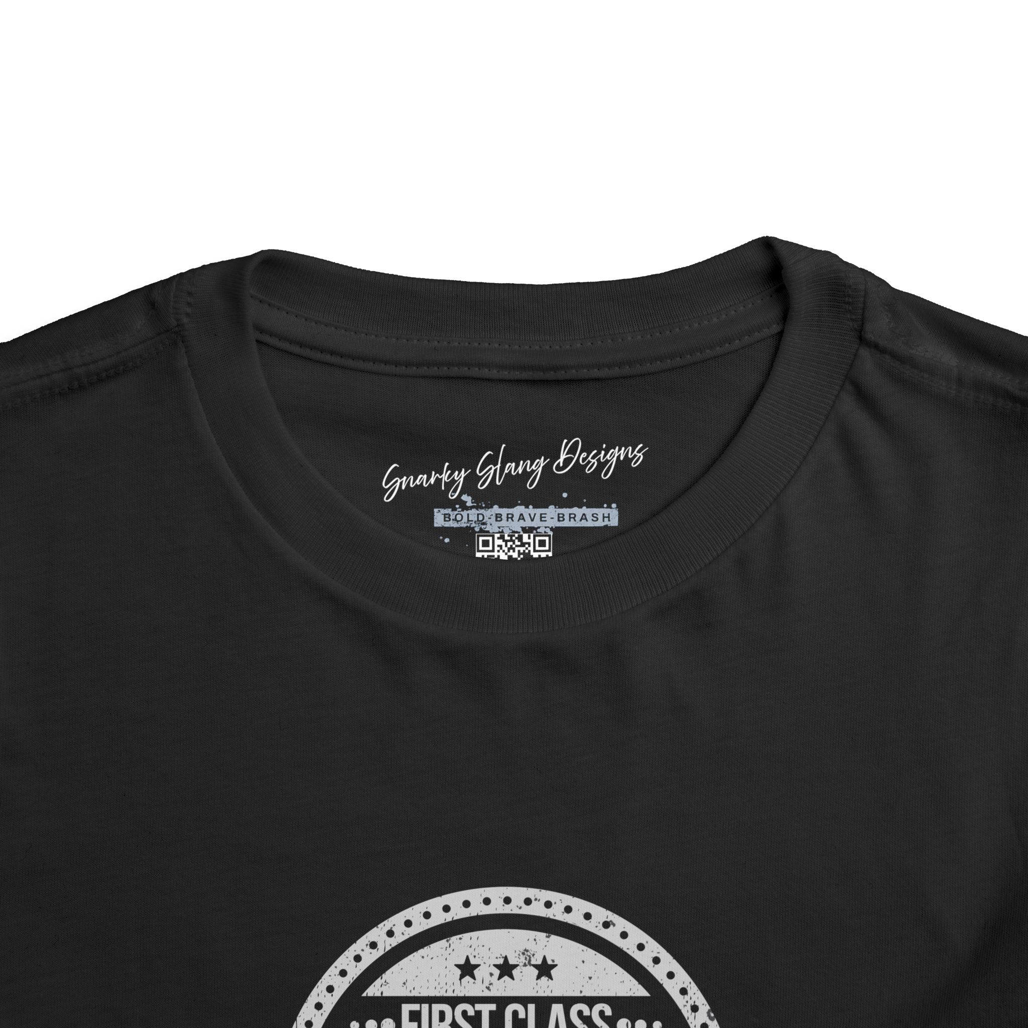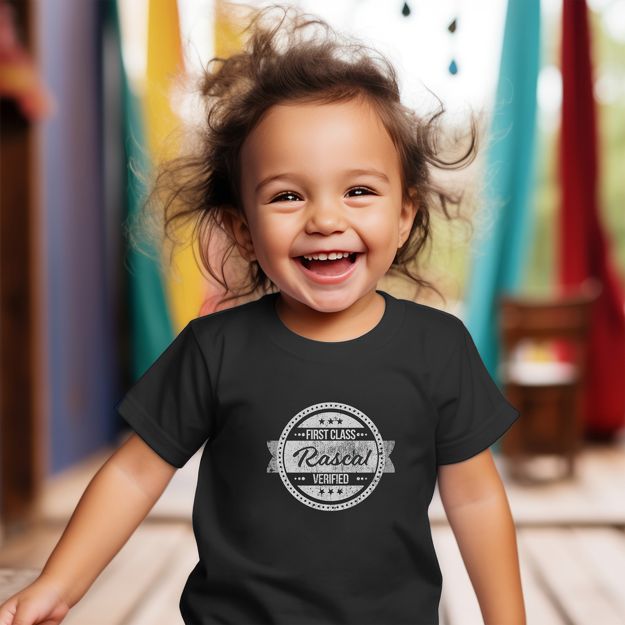 This toddler tee captures the playful spirit of little ones with a cheeky “1st Class Rascal” message that feels like a knowing wink from parent to child. Lightweight and soft, the shirt moves with busy days of play, naps, and snack-time messes. Side seams give it a tidy, durable shape that holds up to toddler energy. The fabric is smooth and breathable — airlume-combed cotton for solid colors, with thoughtfully blended heathers — so it stays gentle on sensitive skin. A tear-away label keeps dressing fuss-free. Slip this tee on before a day at the park, a family photo, or a weekend outing and let the design do the talking: sweet, a little mischievous, and entirely themselves.