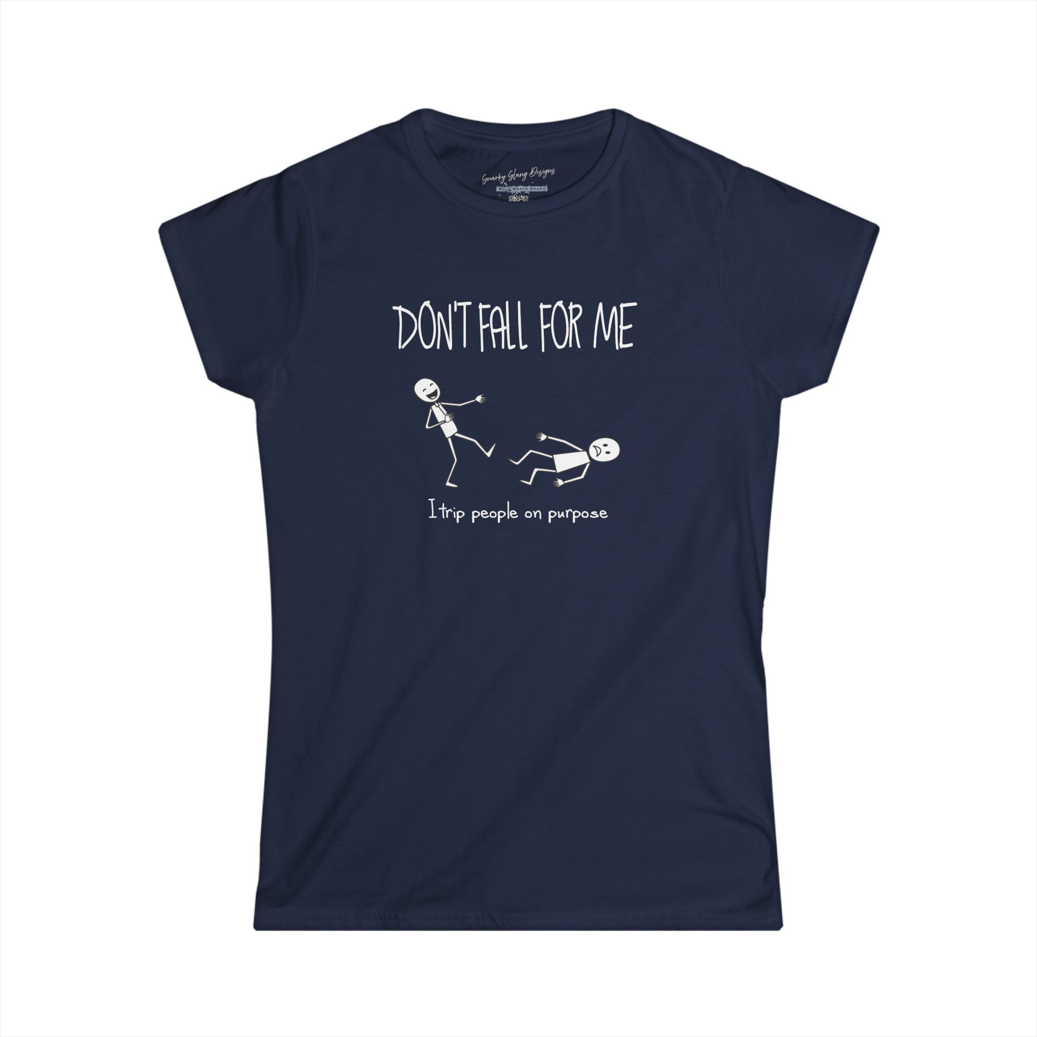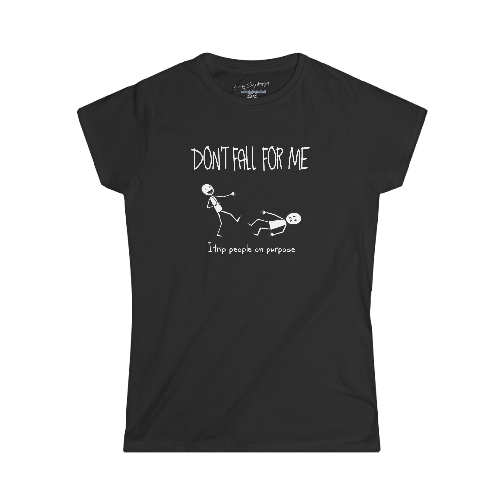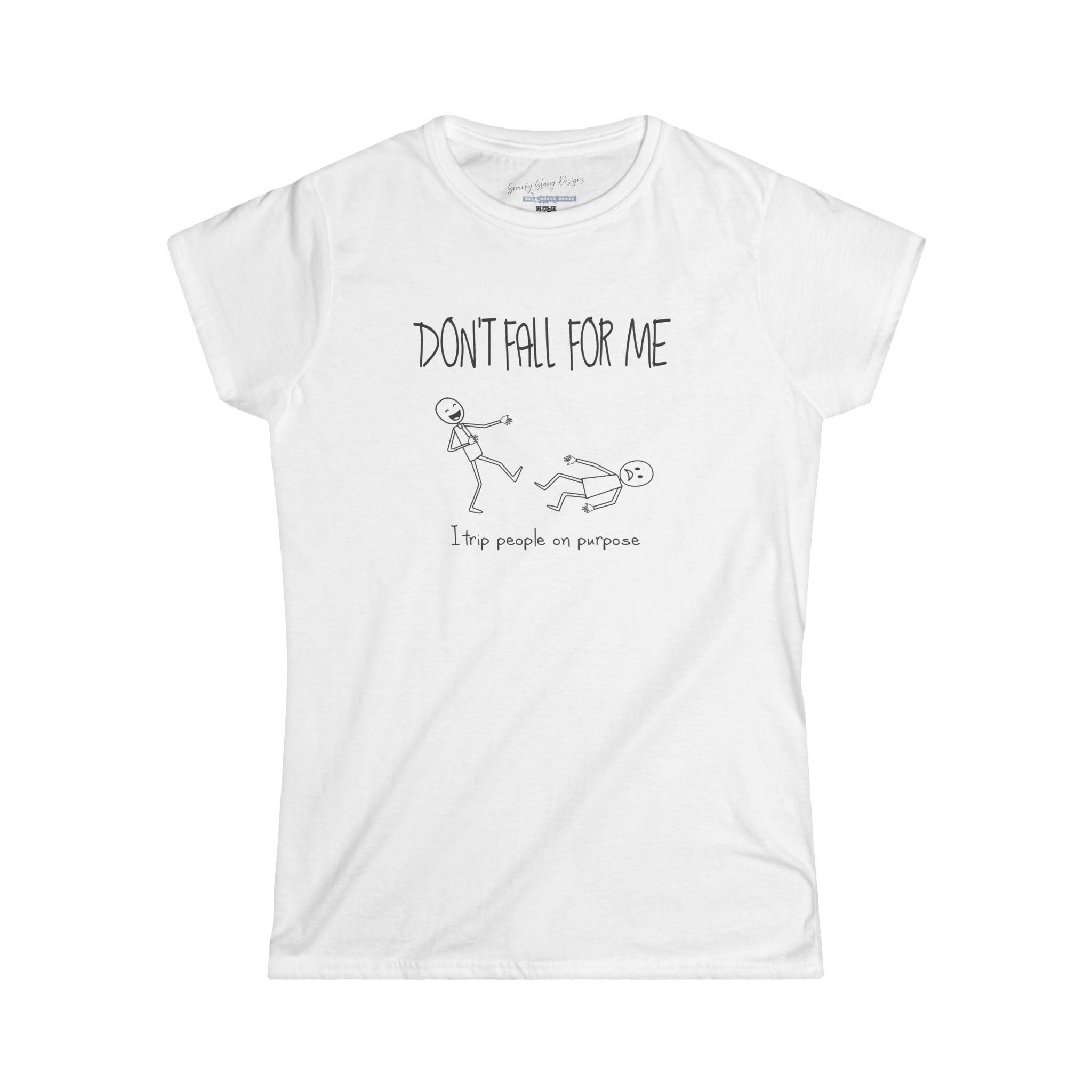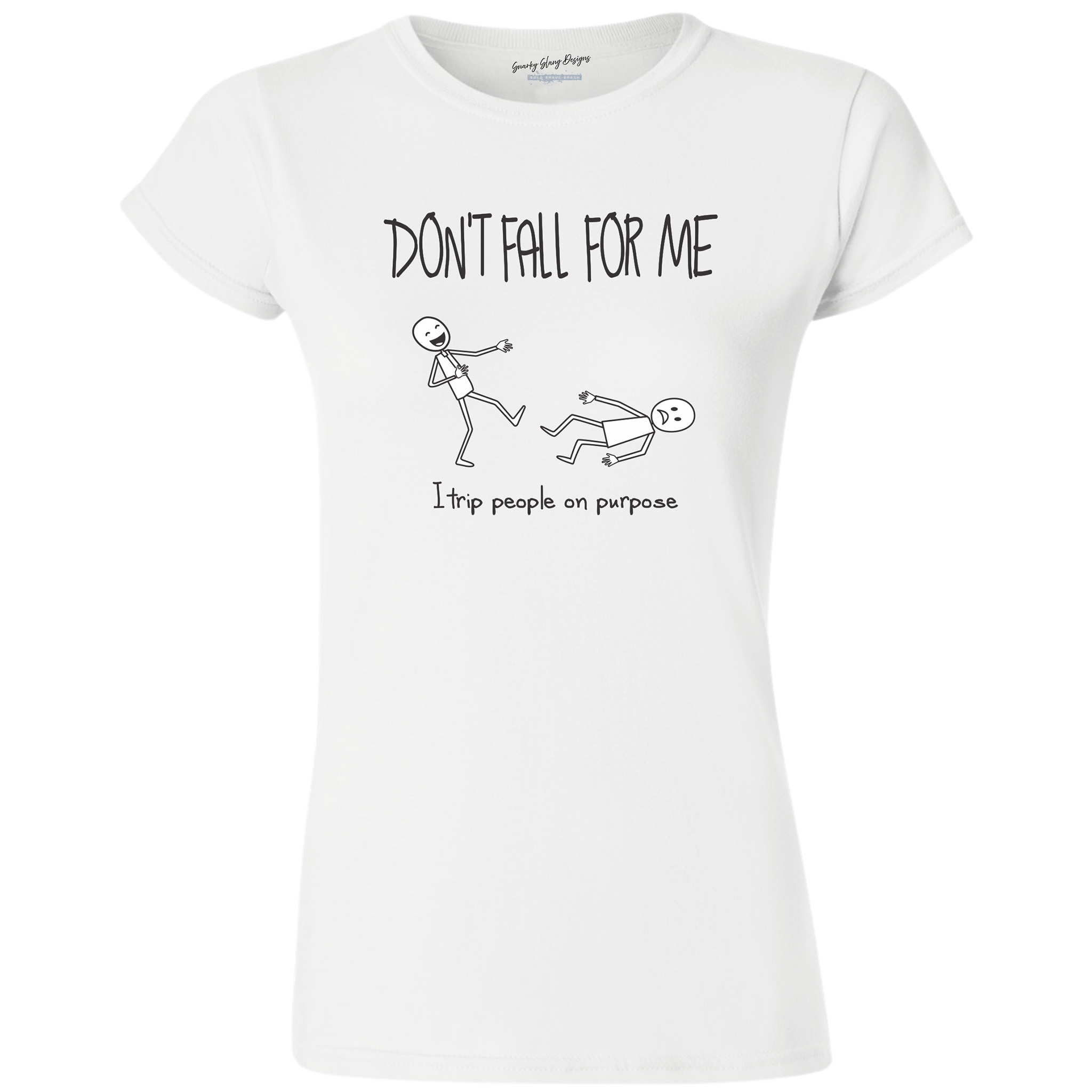 Don’t Fall For Me Tee — Funny Women’s ‘I Trip People On Purpose’ Graphic Shirt