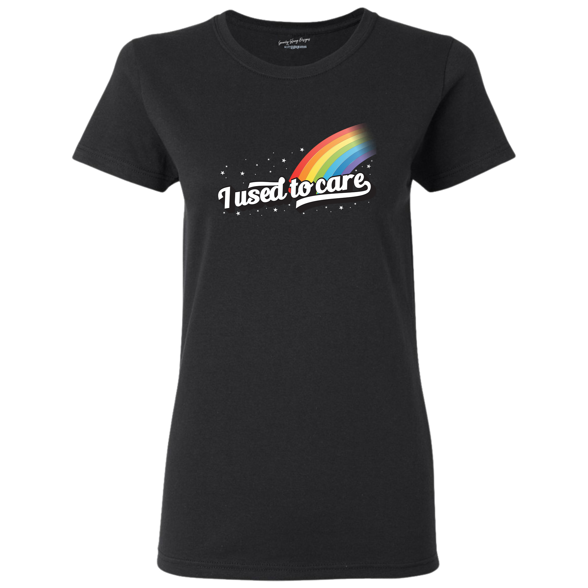 I Used to Care Retro Rainbow Tee — Women’s Funny Graphic T-Shirt